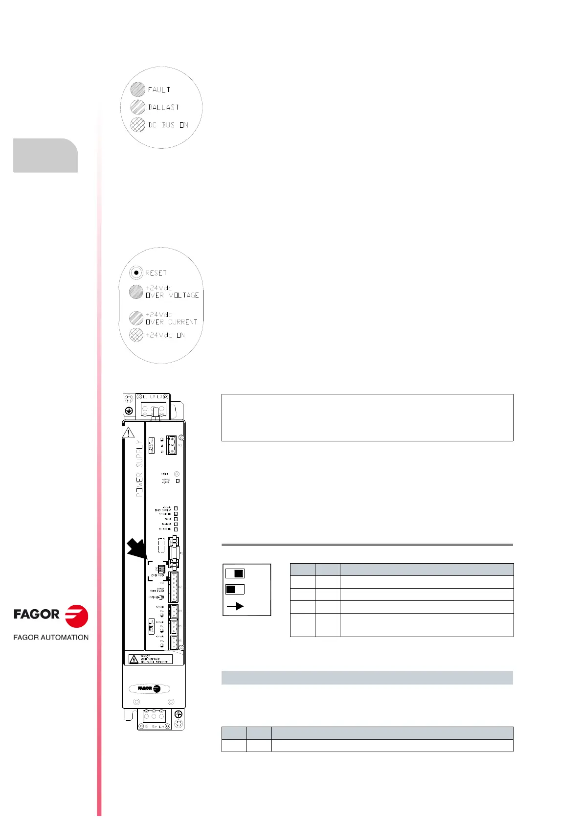 RESET. Initializes the auxiliary 24 V DC power supply.