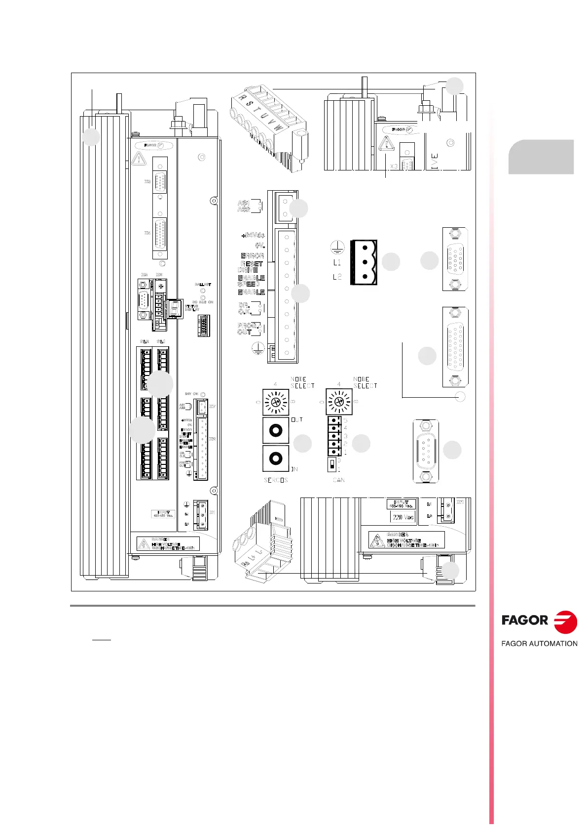 X1. Connector for the internal 24 V DC power supply (2-ph. with line voltage V AC).