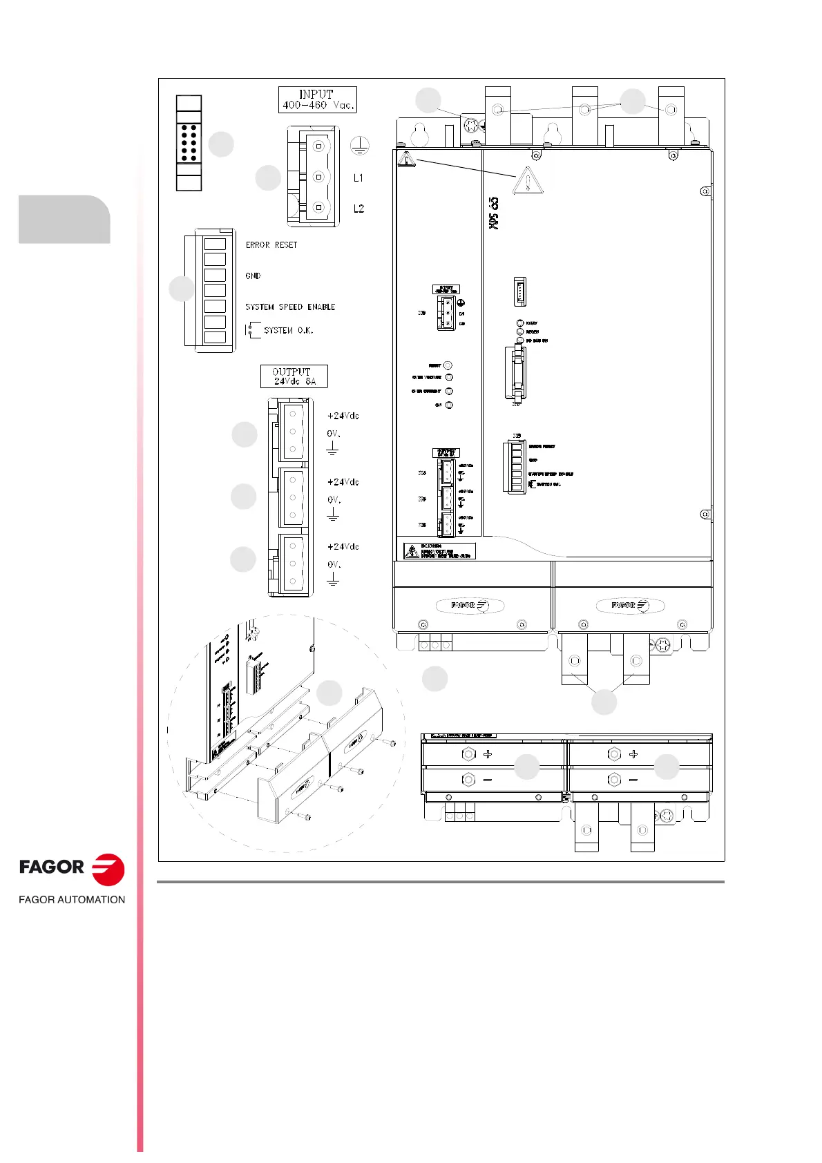 4. Power DC BUS supplying power to the moudular drives through metal bars.