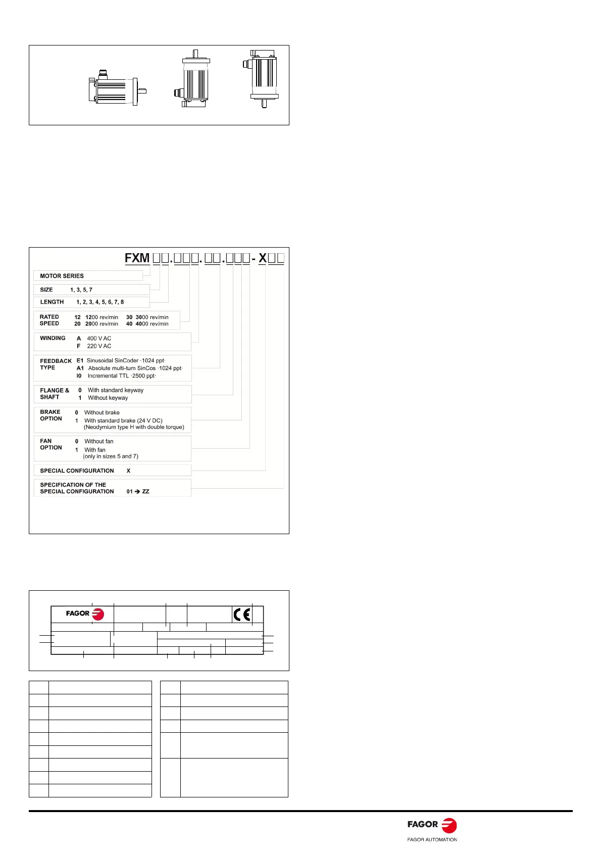 FAGOR offers the necessary data to identify the motor for the user.