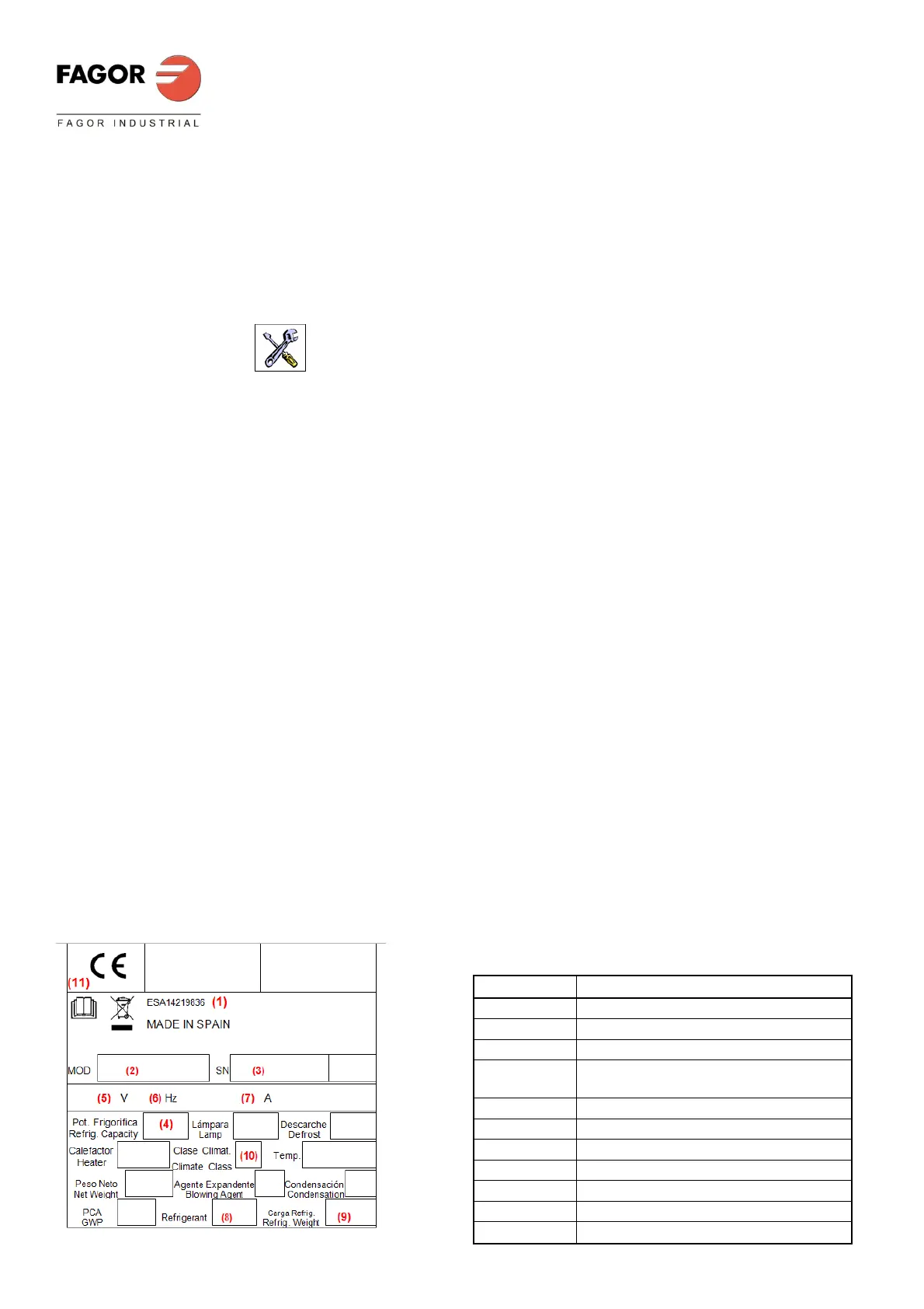 Brève explication de la plaque de caractéristiques apposée sur votre armoire réfrigéré,