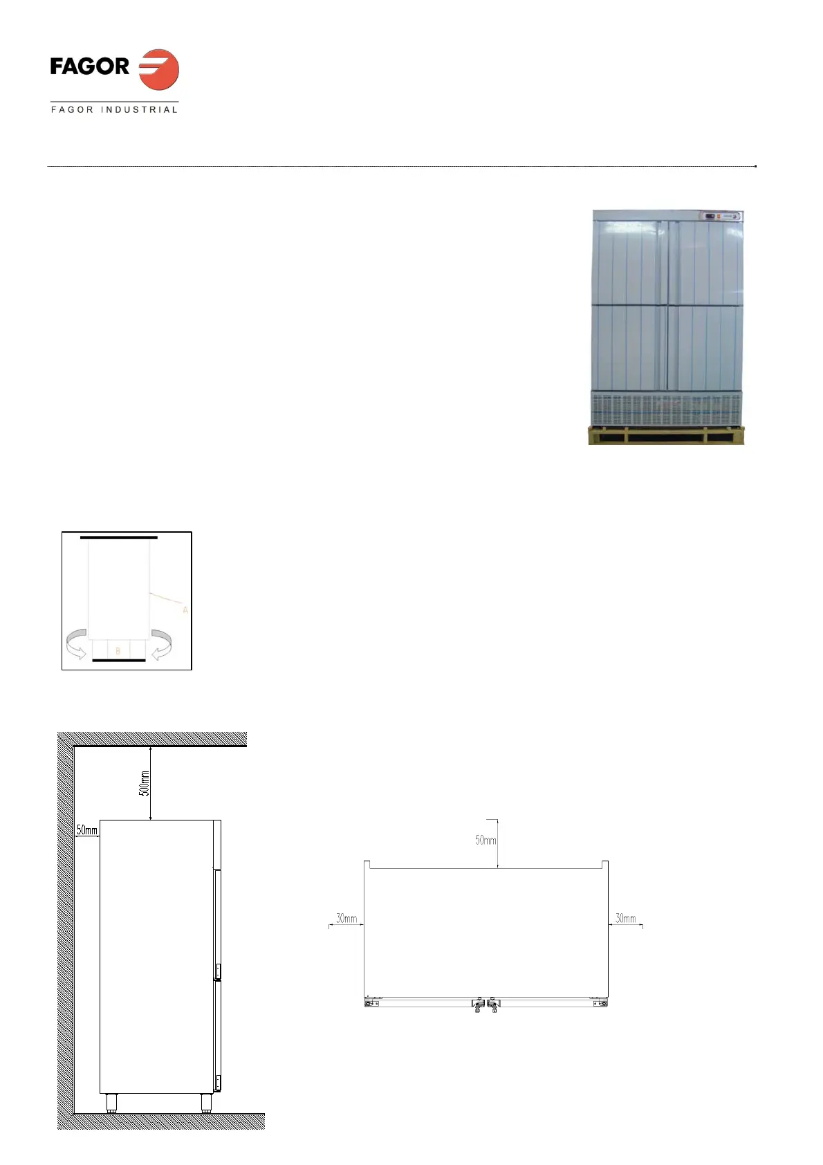 An seinem endgültigen Standort muss der Schrank in einem Wandabstand von 50 mm zur