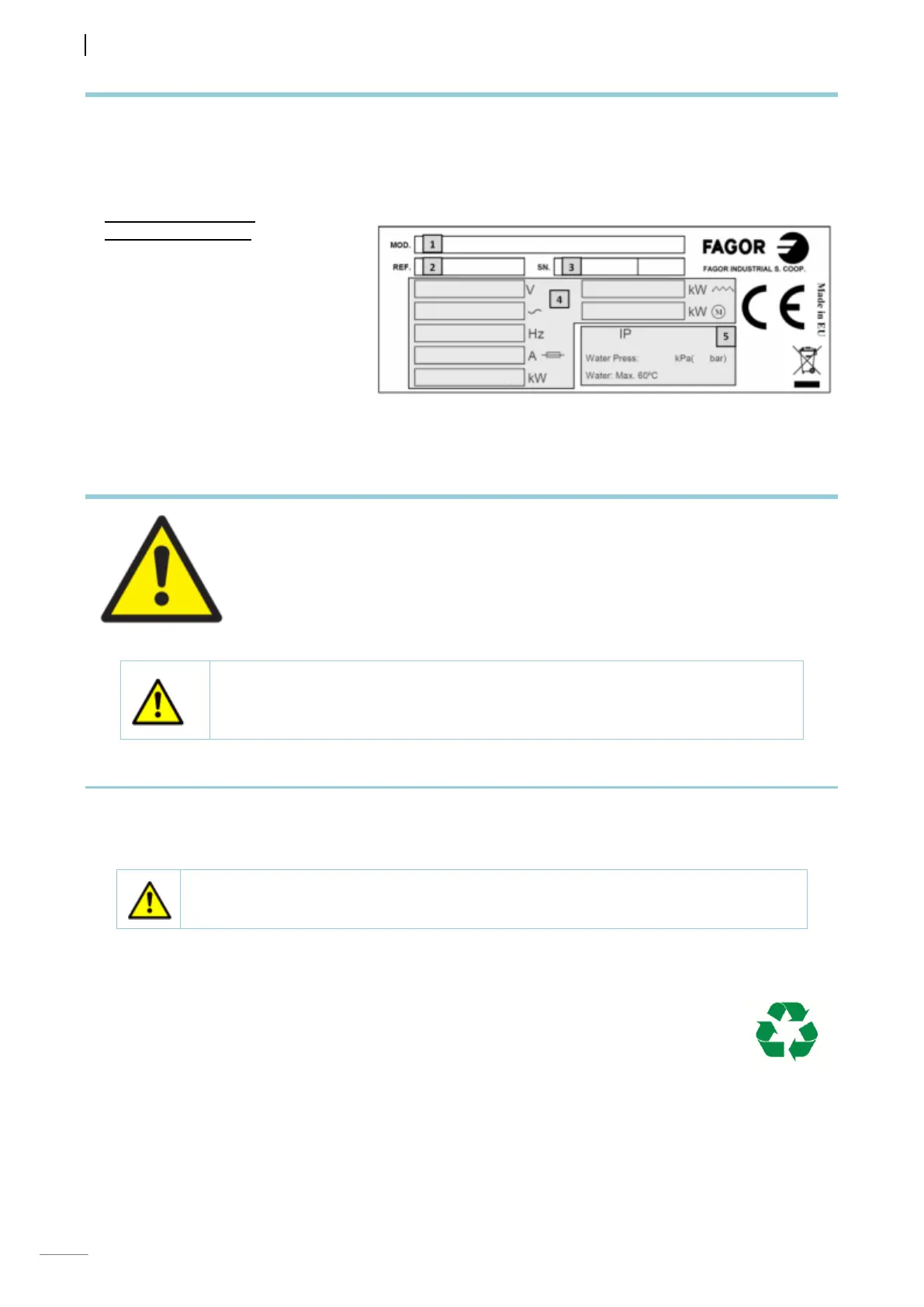 al proprio fornitore e al vettore. In caso di dubbi non utilizzare la macchina.