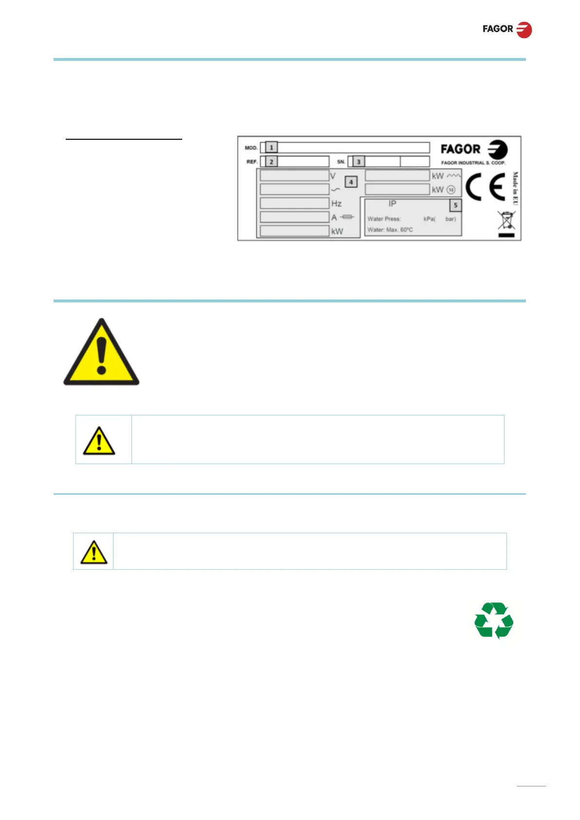 All the appliances have a specifications plate which identifies the appliance and indicates its technical