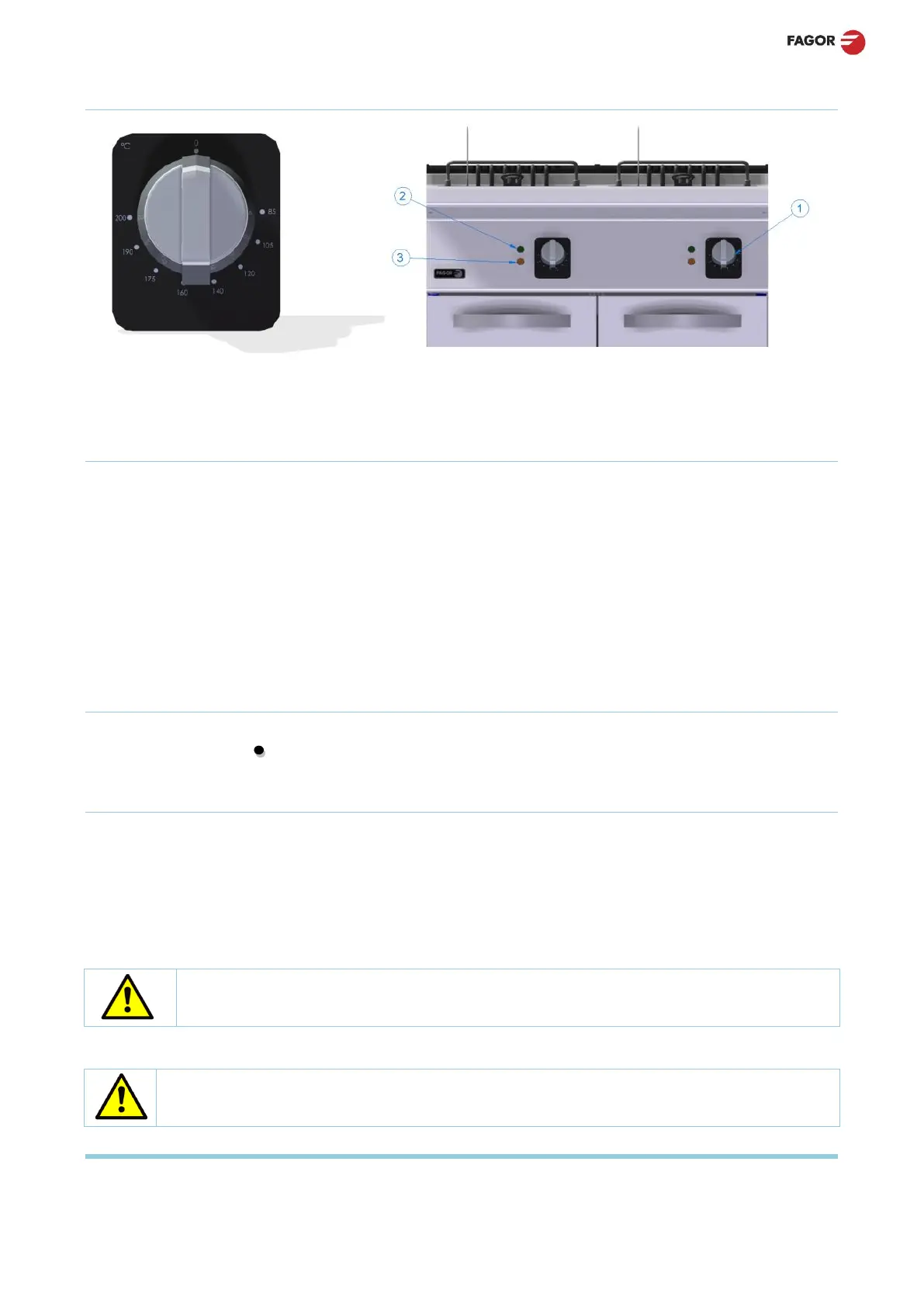 • Podczas pracy elementów grzejnych świeci się światło L2 (pomarańczowe).