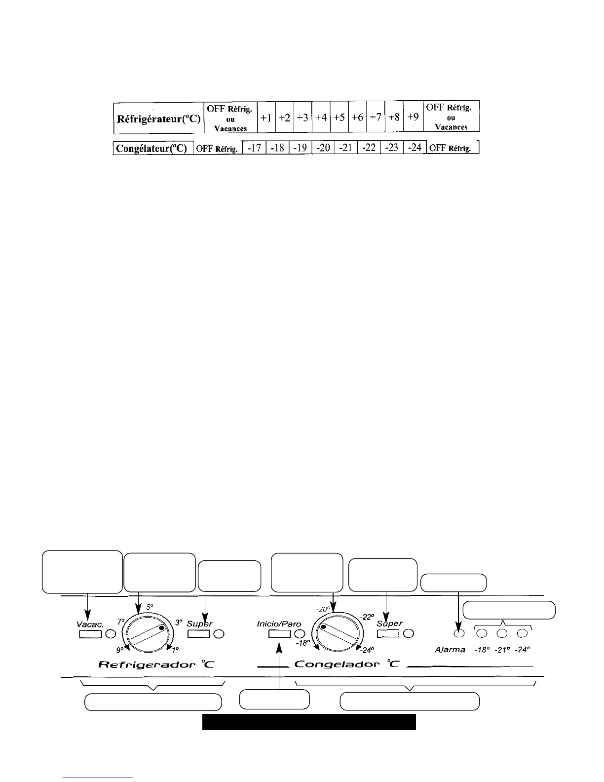 lisée pour sélectionner la température du réfrigérateur, jusqu’à ce que le voyant du réfrigérateur s’é-
