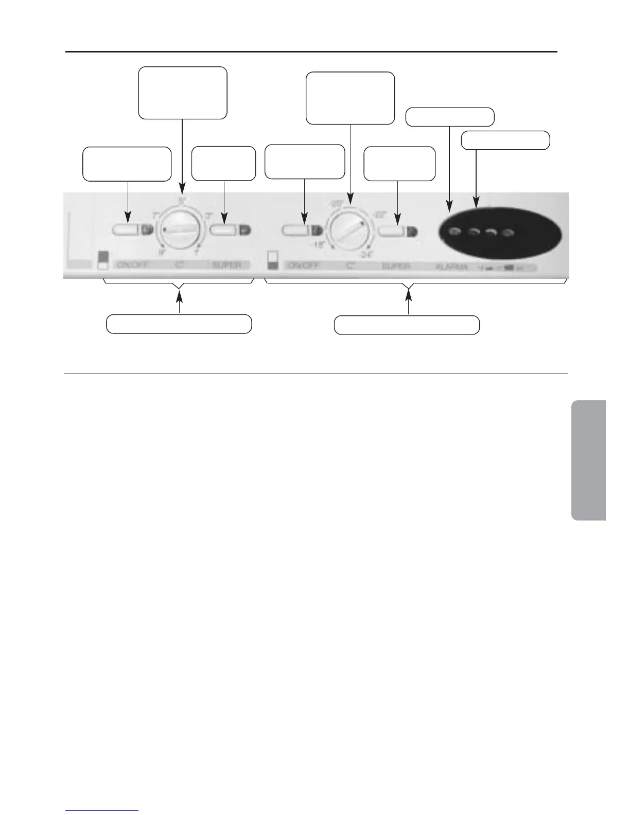 "Alarm" ➡➡ A light and audio signal is activated if the freezer temperature is
