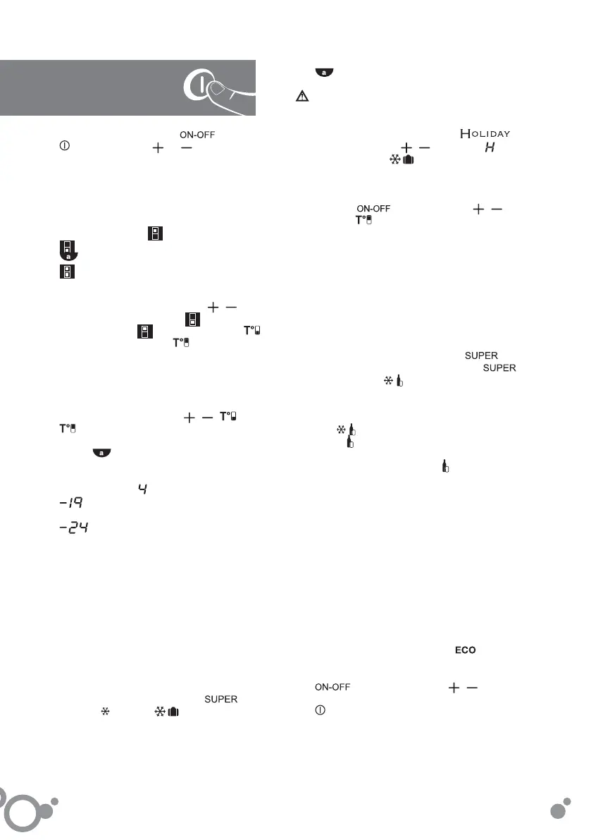Ligar/desligar o congelador: Pressione a tecla
