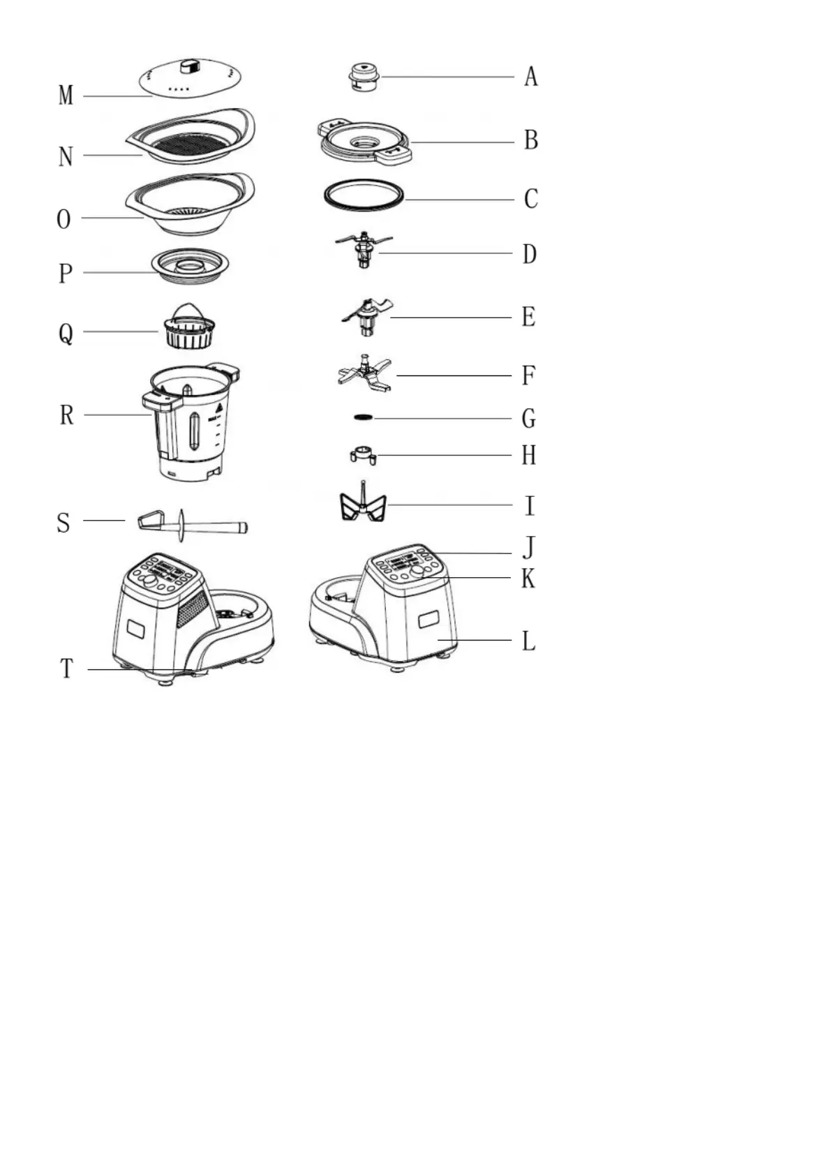 A. Measuring cup N. Food steamer (Tray)