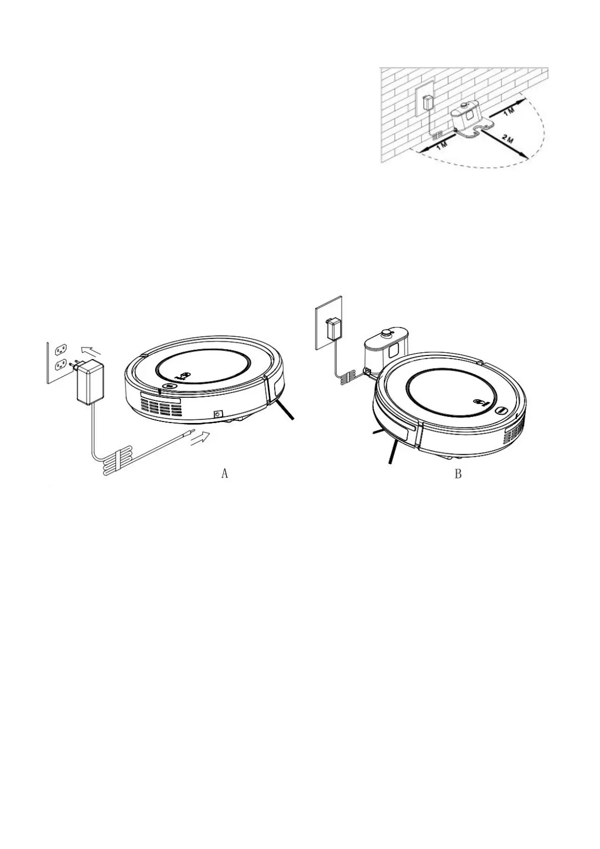 A. Place charging home base against the wall, plug in adapter,