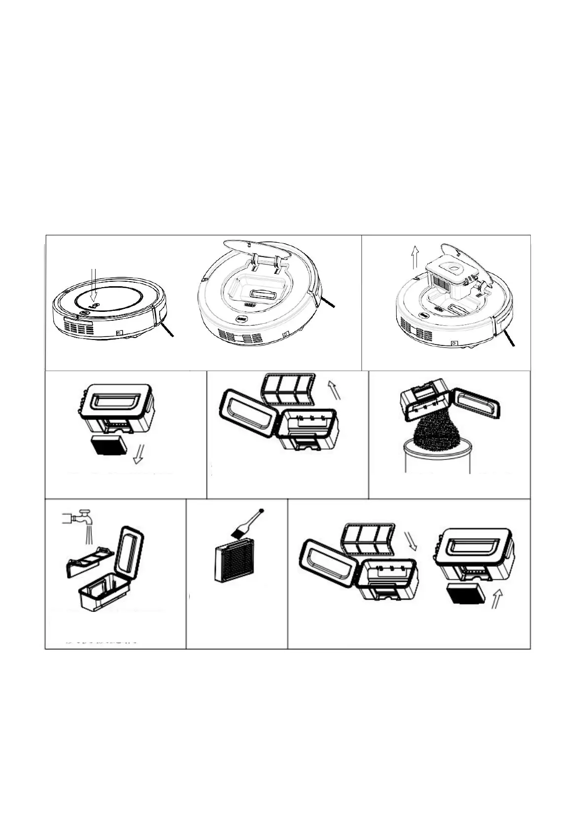 Empty and clean dust bin after each use following the steps as shown in the figures below: