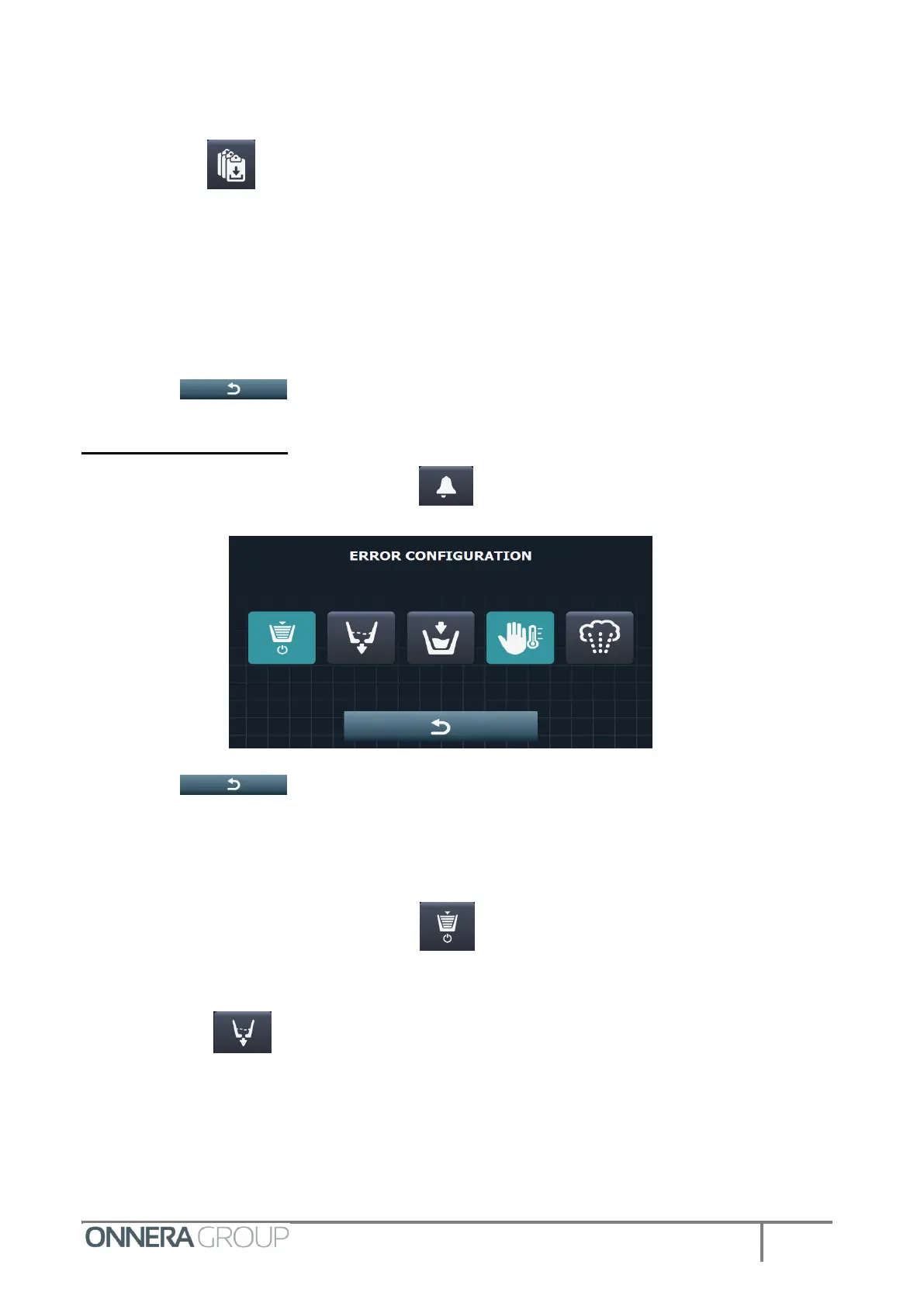 On the maintenance screen, select the icon, and go to the alarm configuration screen.