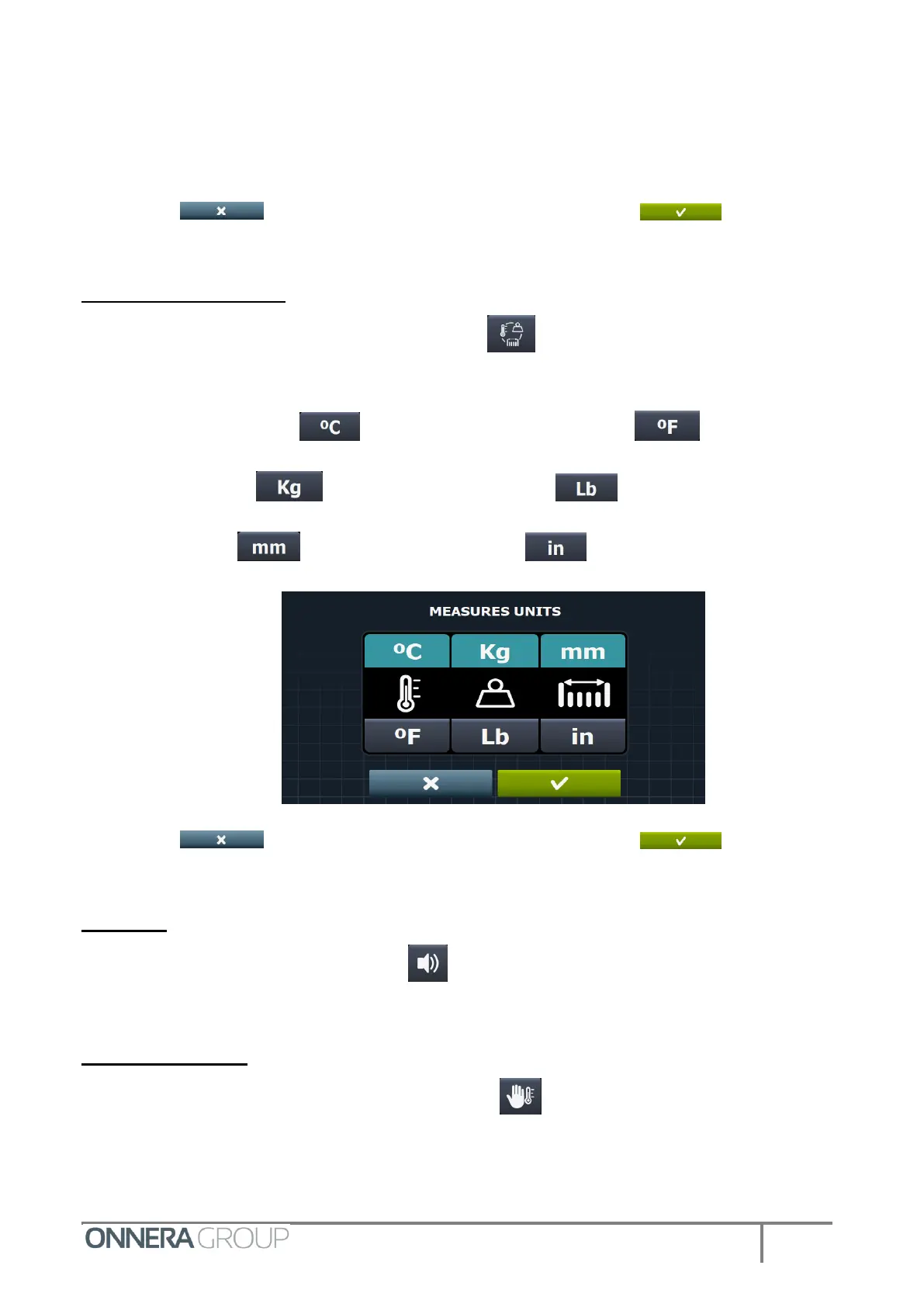 On the initial configuration screen, select the icon , and go to the units of measure menu to