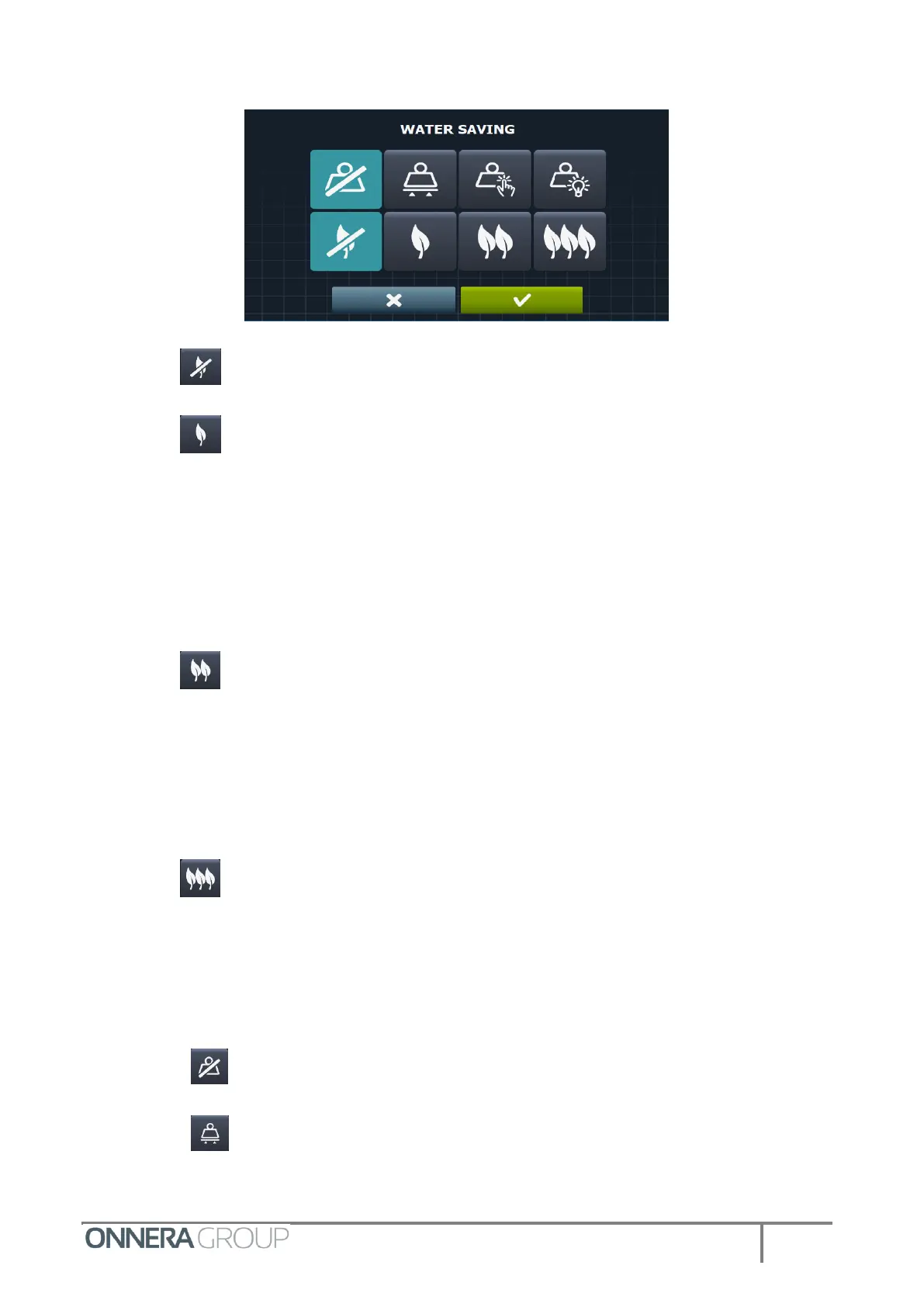 Press to deactivate water saving.