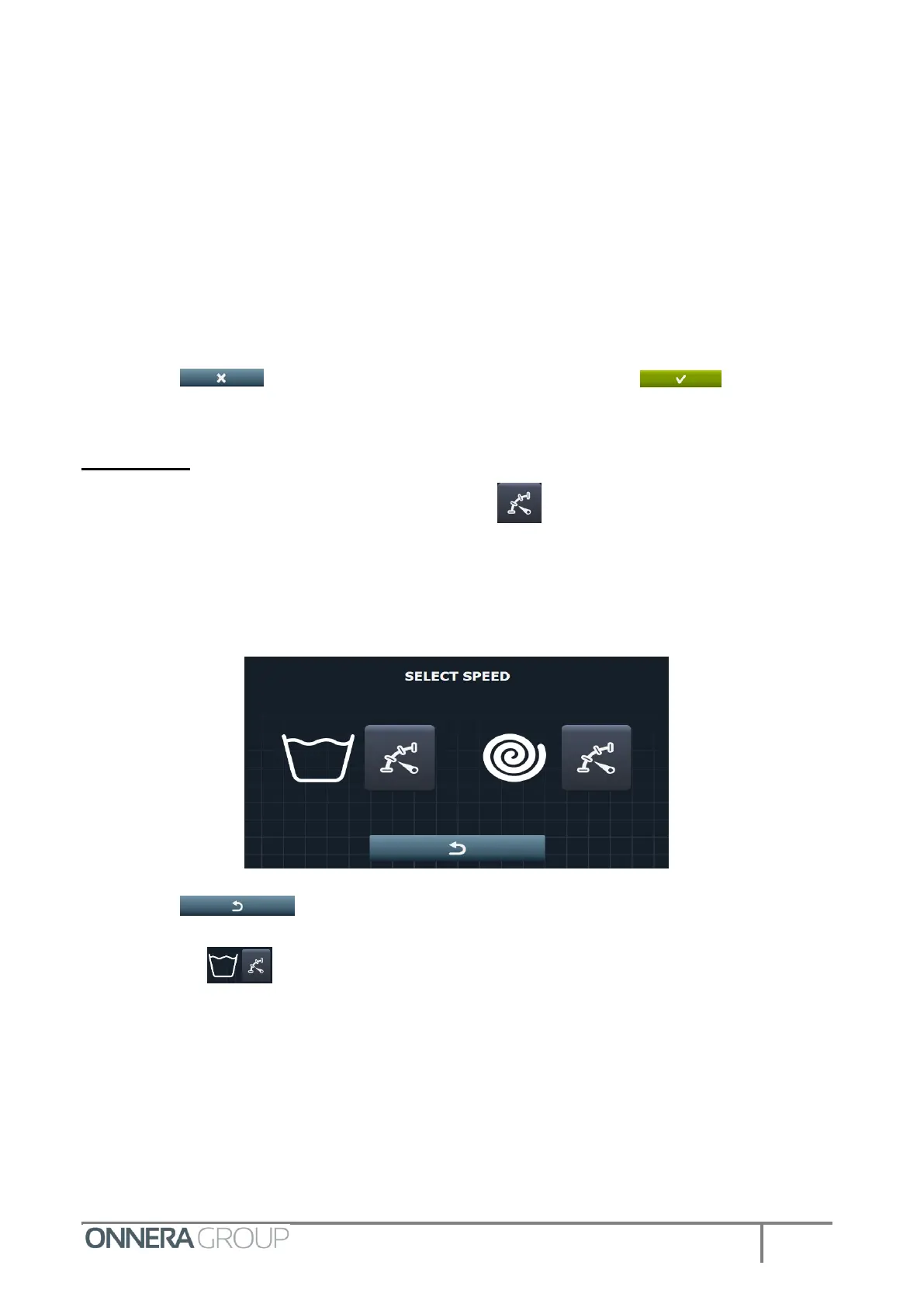 Press the key to go to the wash speed selection.