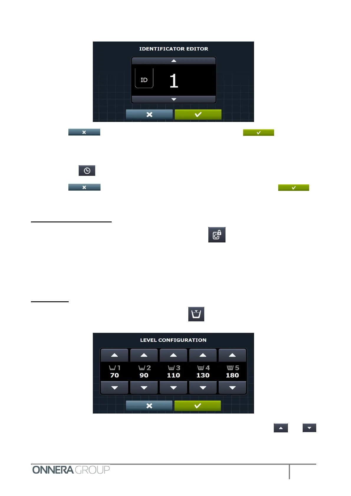 On the initial configuration screen, select the icon , and go to the level configuration menu.
