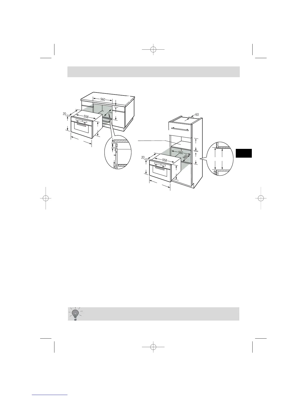 Centre the oven in the unit, and make that it is at least 2 mm from any other unit beside