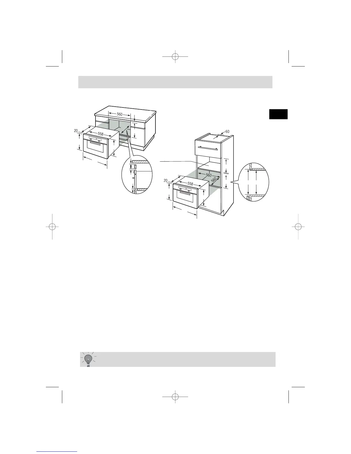 Centrez le four dans le meuble de façon à garantir une distance de 2 mm mini avec le