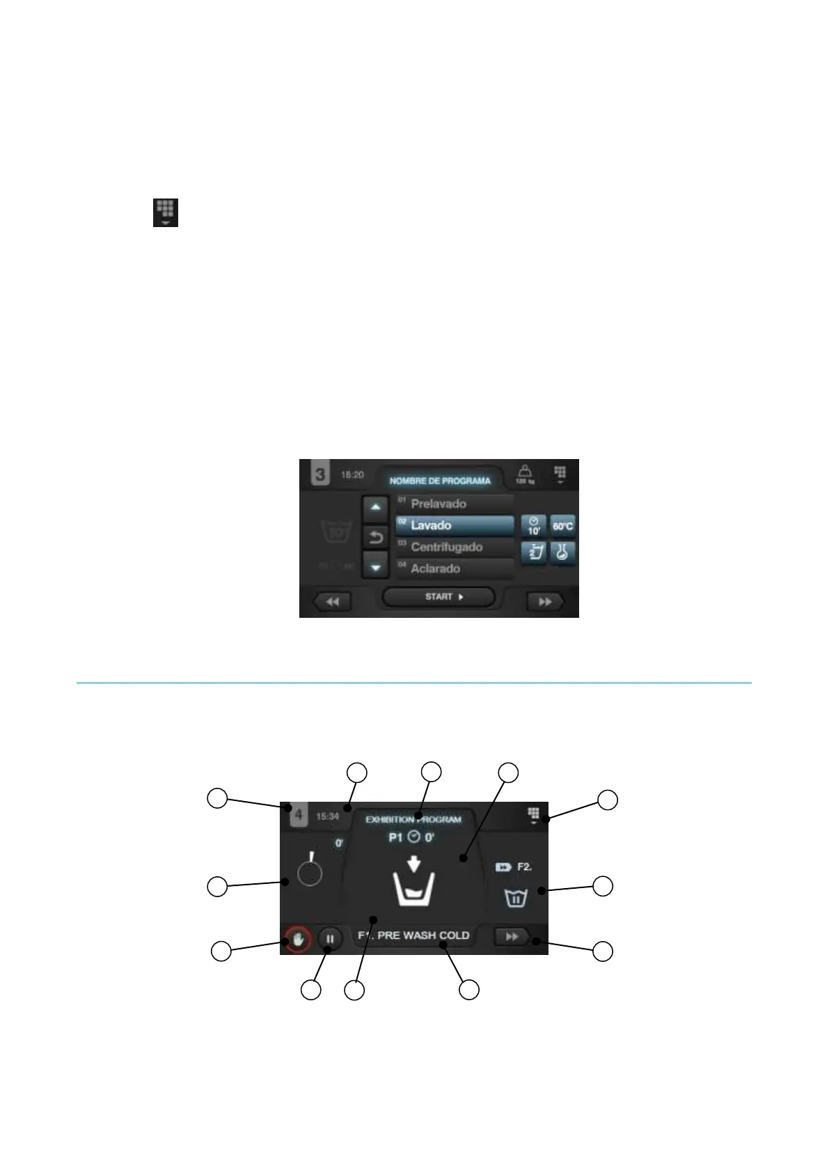 4. Menù principale: Accesso al menù principale della lavatrice, in cui è possibile gestire i