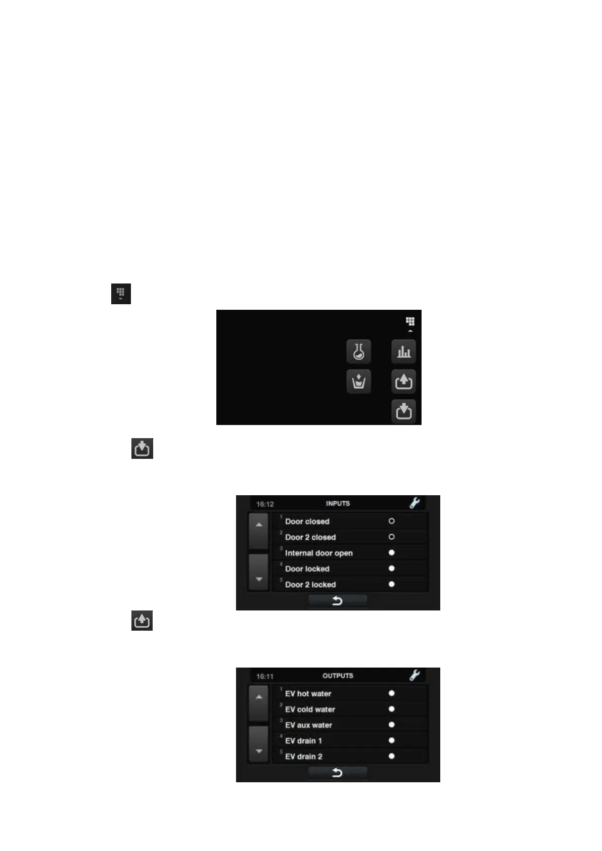 Uscite: visualizza lo stato di ogni uscita. Le uscite disponibili in TUTTE le macchine,