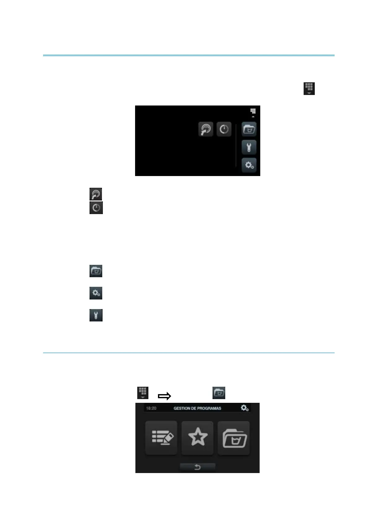 Der Zugang zu diesem Menü erfolgt über das zum Hauptbildschirm gehörende Symbol (siehe