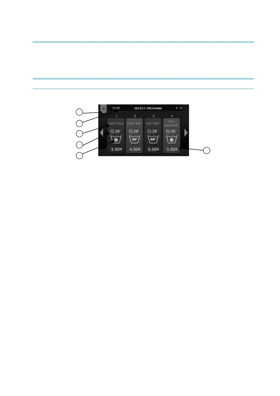 a disposizione 4 tasti grandi fissi che ci consentiranno di selezionare i programmi di lavaggio.