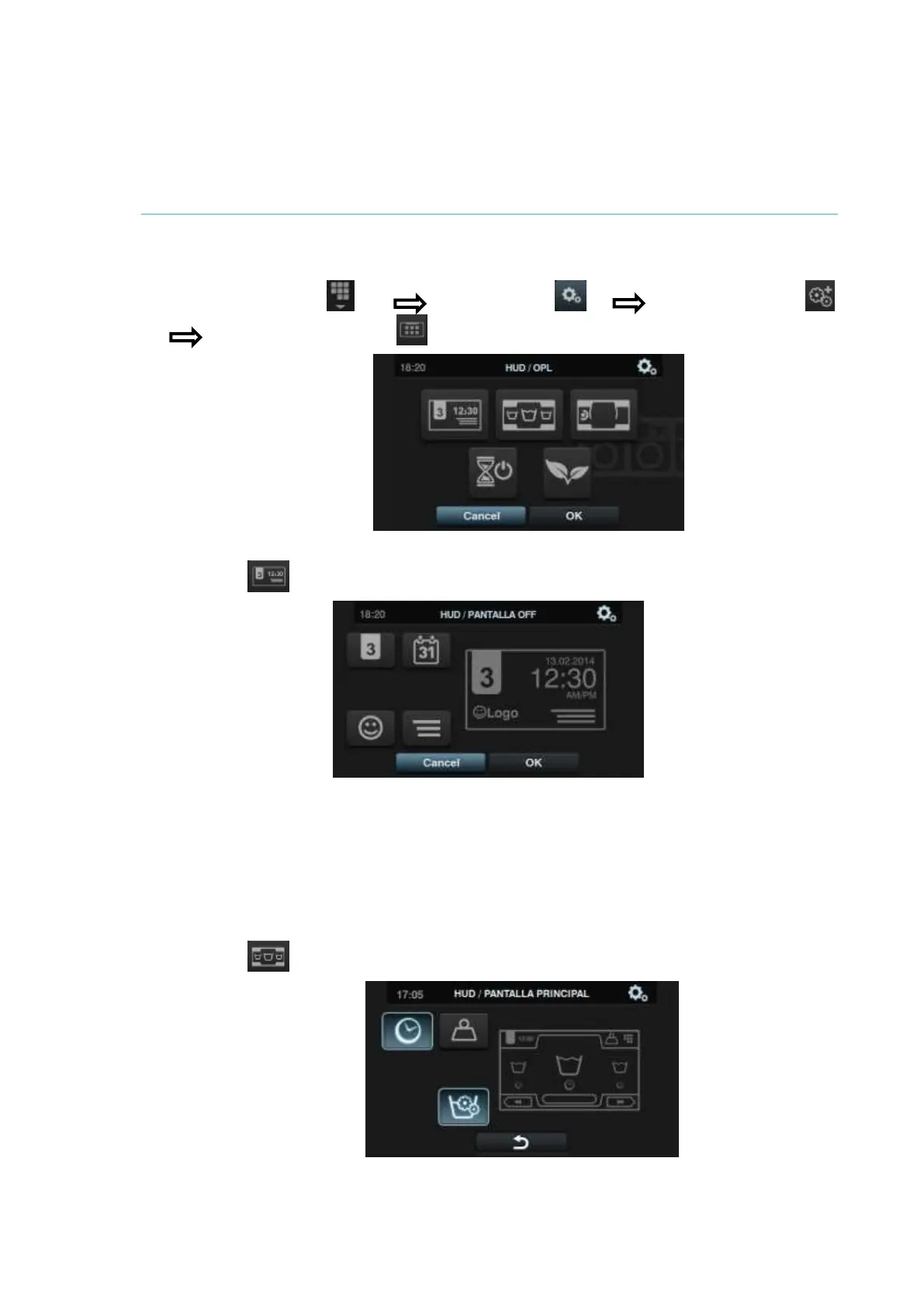 Configuração dos parâmetros que se pretende visualizar no ecrã OFF, ecrã principal e ecrã de