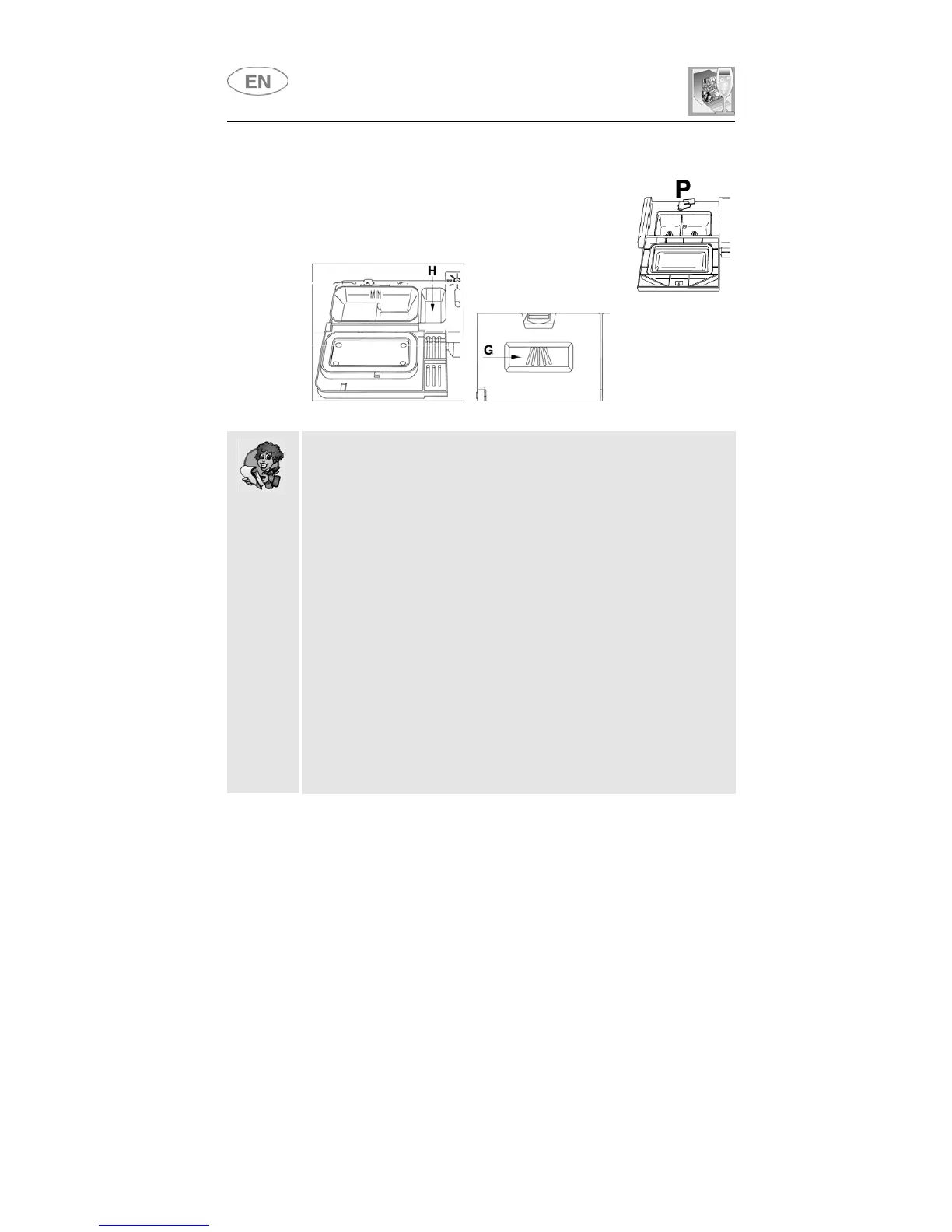 extra detergent must be placed in the cavity G/H (depending on