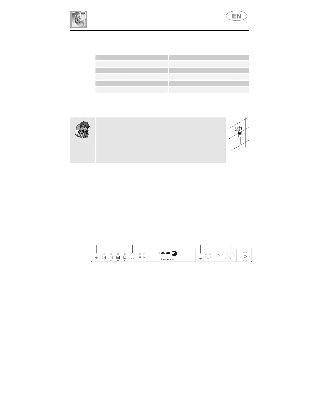• The water supply tap is
