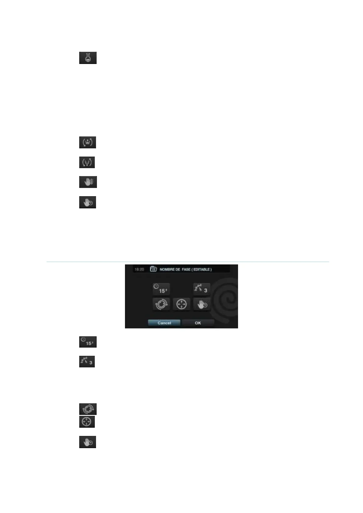 Temps: Valeur en minutes de la longueur de l'essorage. Plage configurable de 1 à