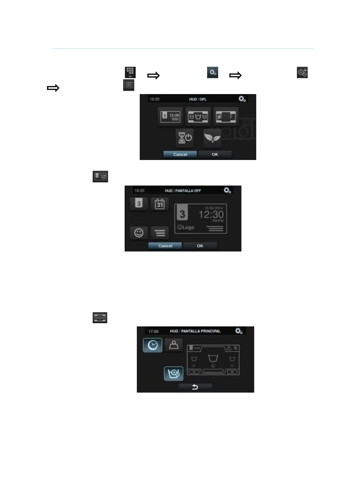Configure les paramètres pour être affichés sur l'écran OFF, l’écran principal et l’écran de