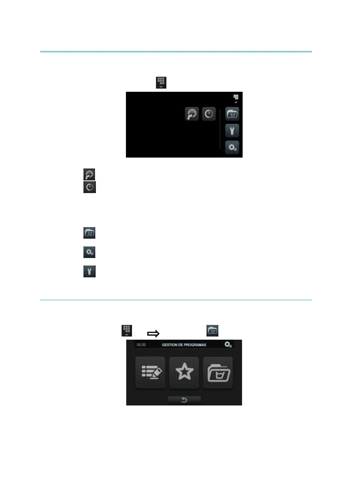 Configurar sistema: Configuração de diferentes secções da máquina de lavar.