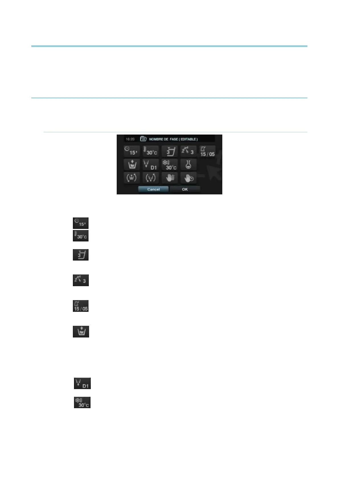 desaguar o pasar a la siguiente fase. Parámetro configurable sólo si la temperatura de la