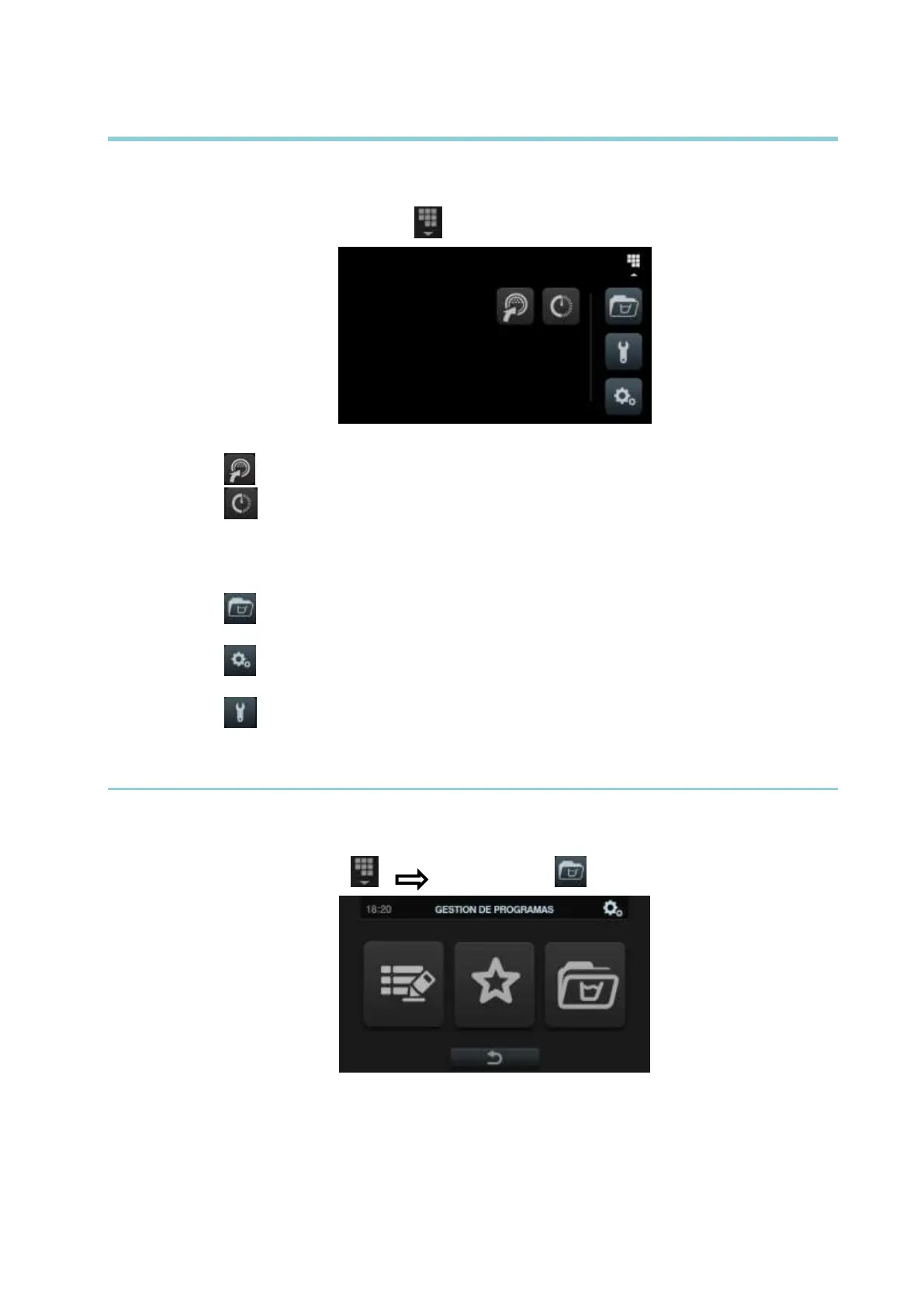 “Biblioteca de fases”, “Mis programas”, y “Biblioteca de programas”.