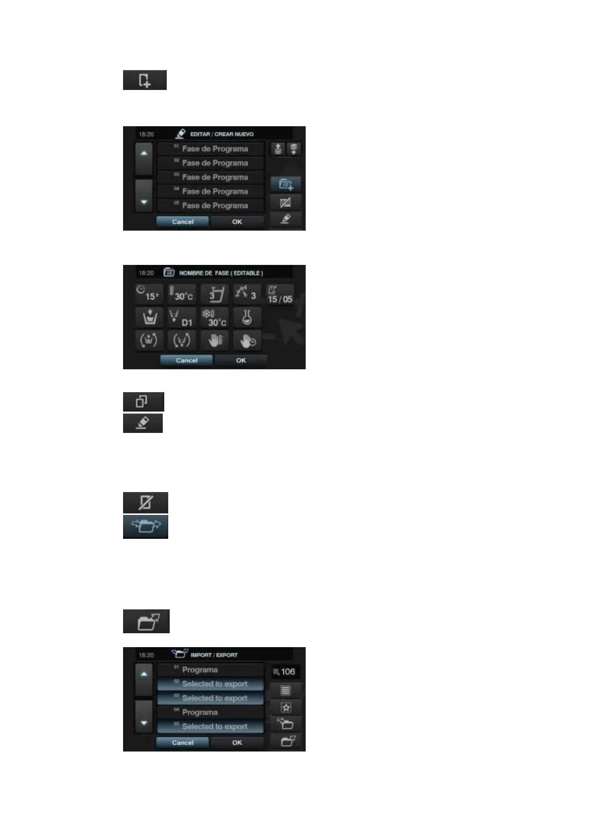 When creating programmes, the cycle parameters can only be consulted. The cycles already