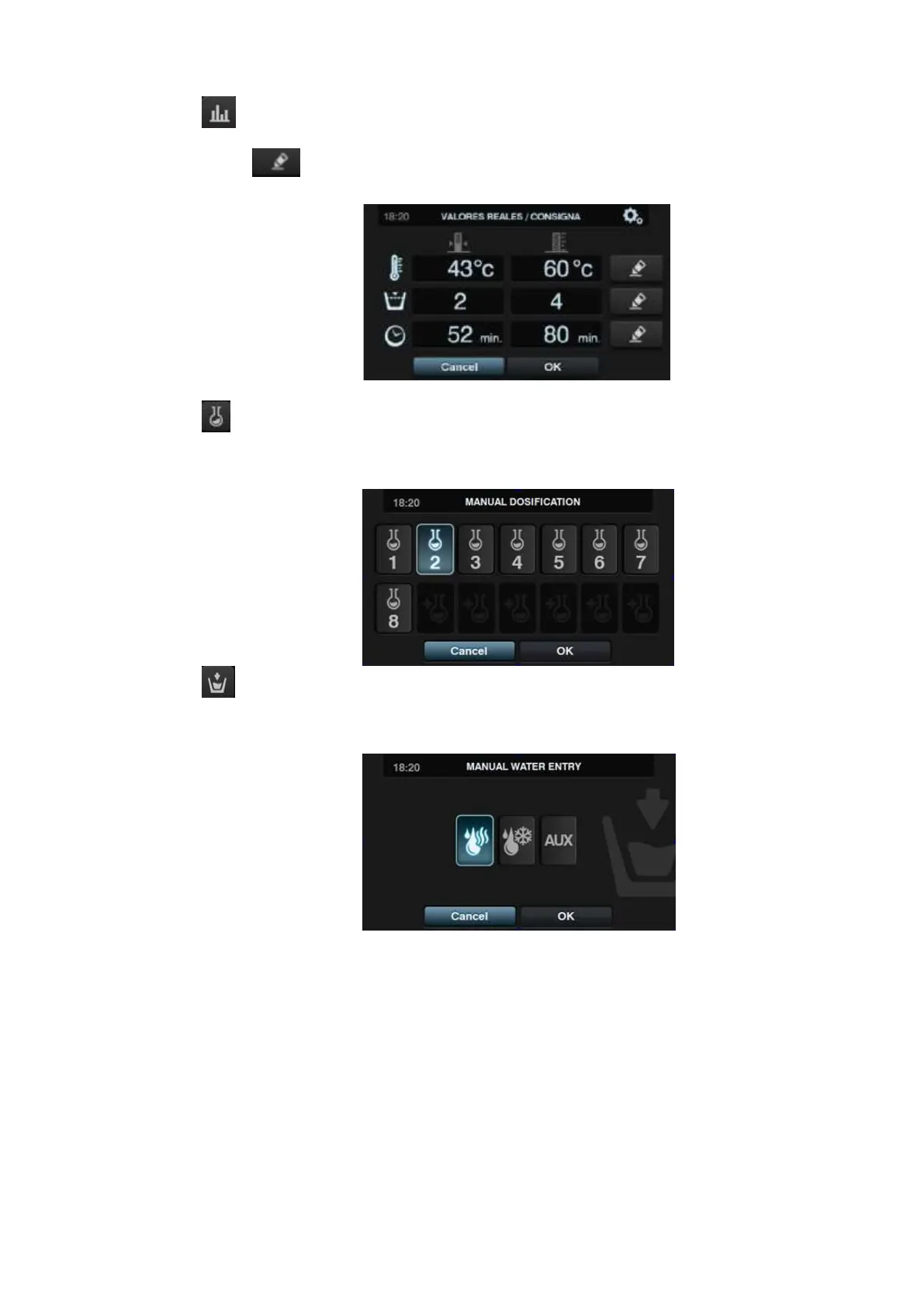 Dosificación manual: Se podrá acceder a este apartado, se visualizará el estado de