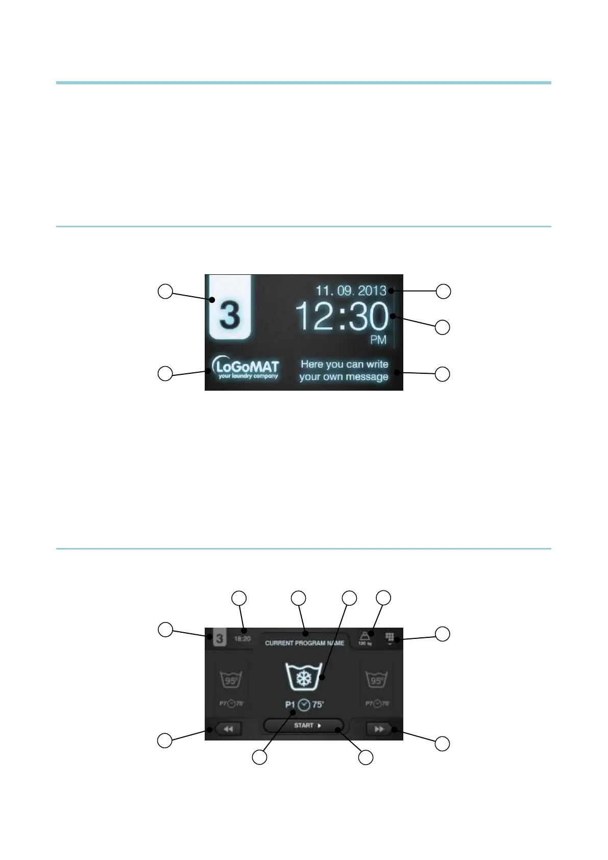 3. Message laverie: Message configuré par l'utilisateur (si activé).