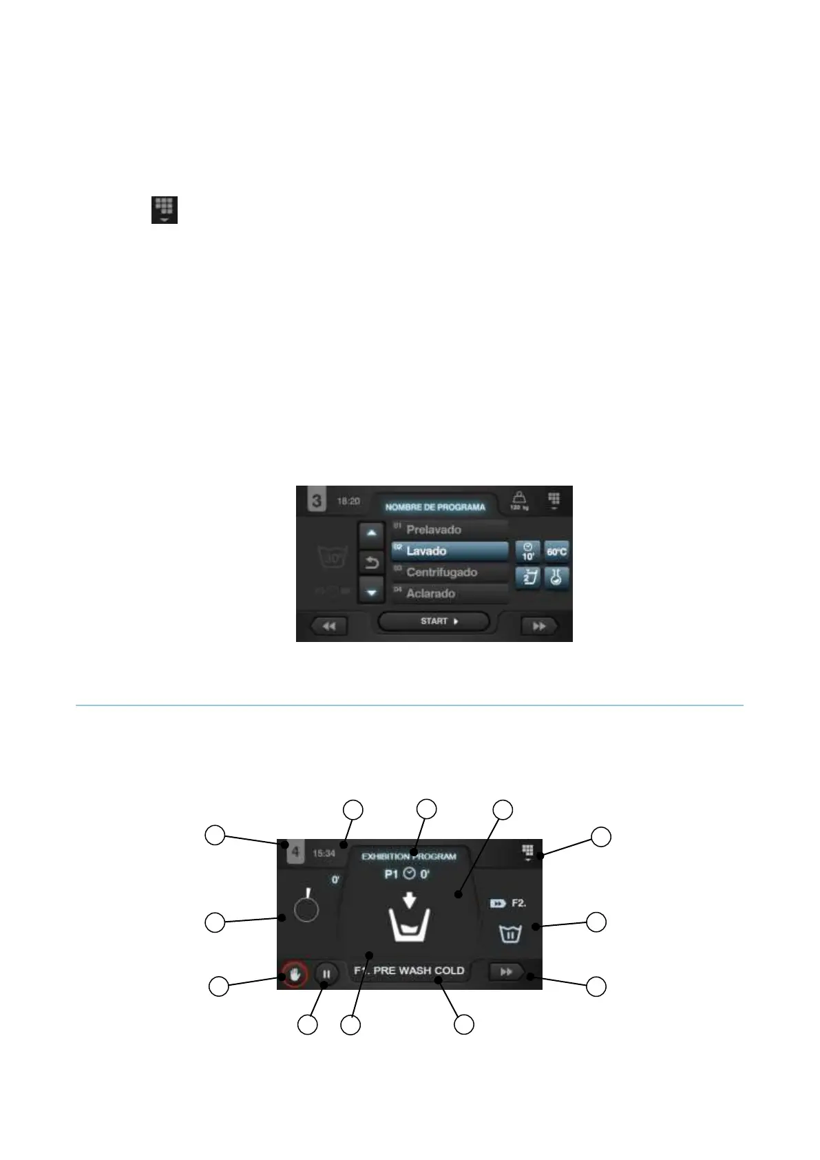 9. Start: Bouton pour démarrer le programme sélectionné du cycle indiqué.