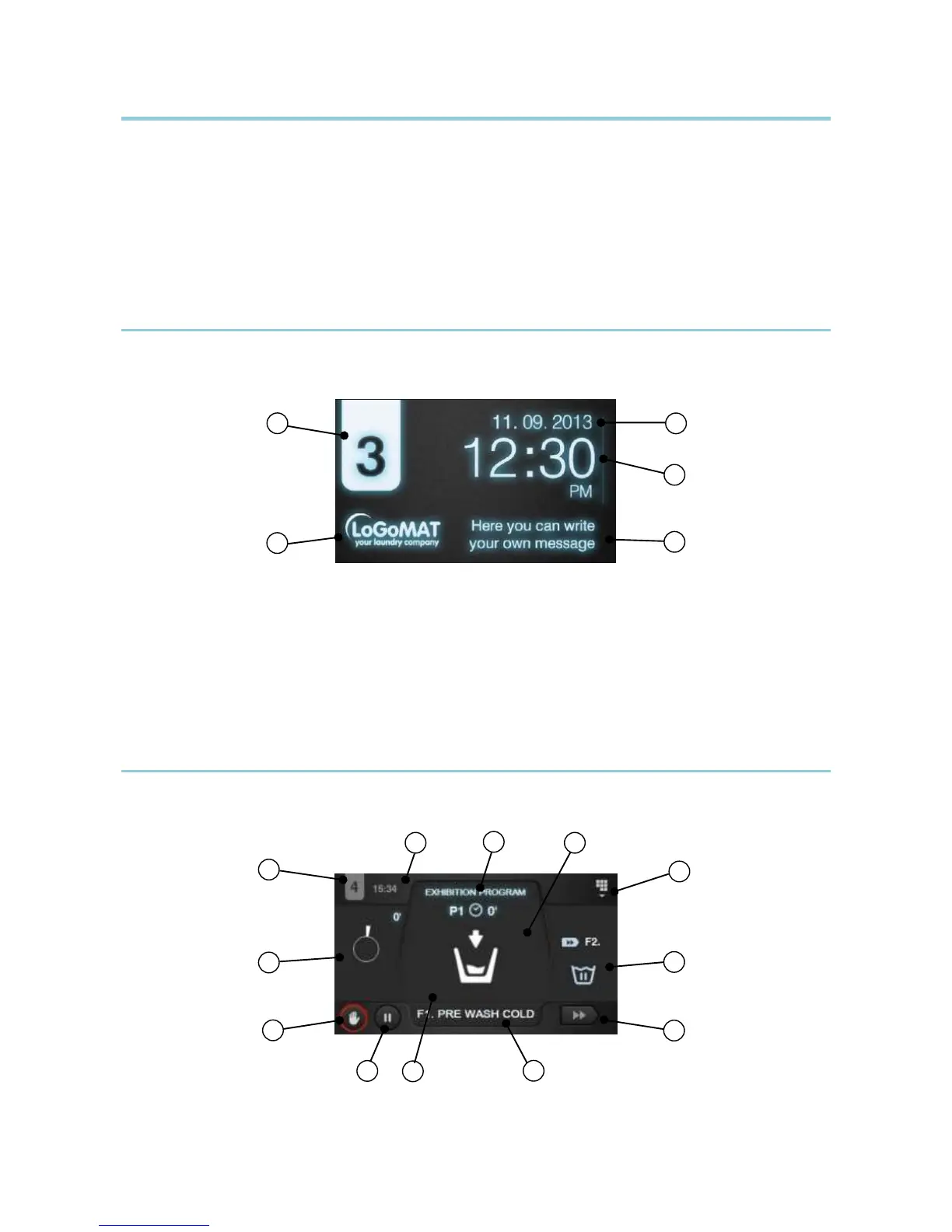 The Main screen of the washing machine is as follows, and displays each of the available options.