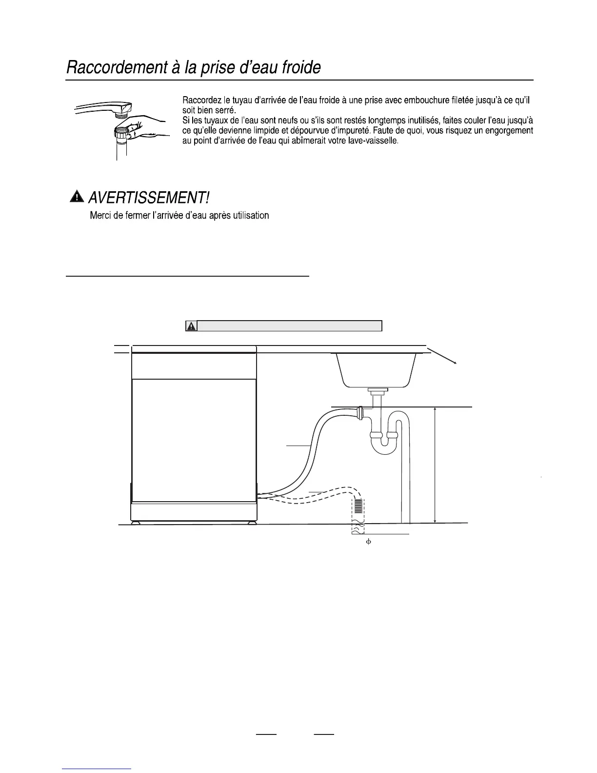 dans l’évier, à condition de ne pas le couder ni l’écraser. L’extrémité haute du tuyau doit se trouver à moins de 1000mm de