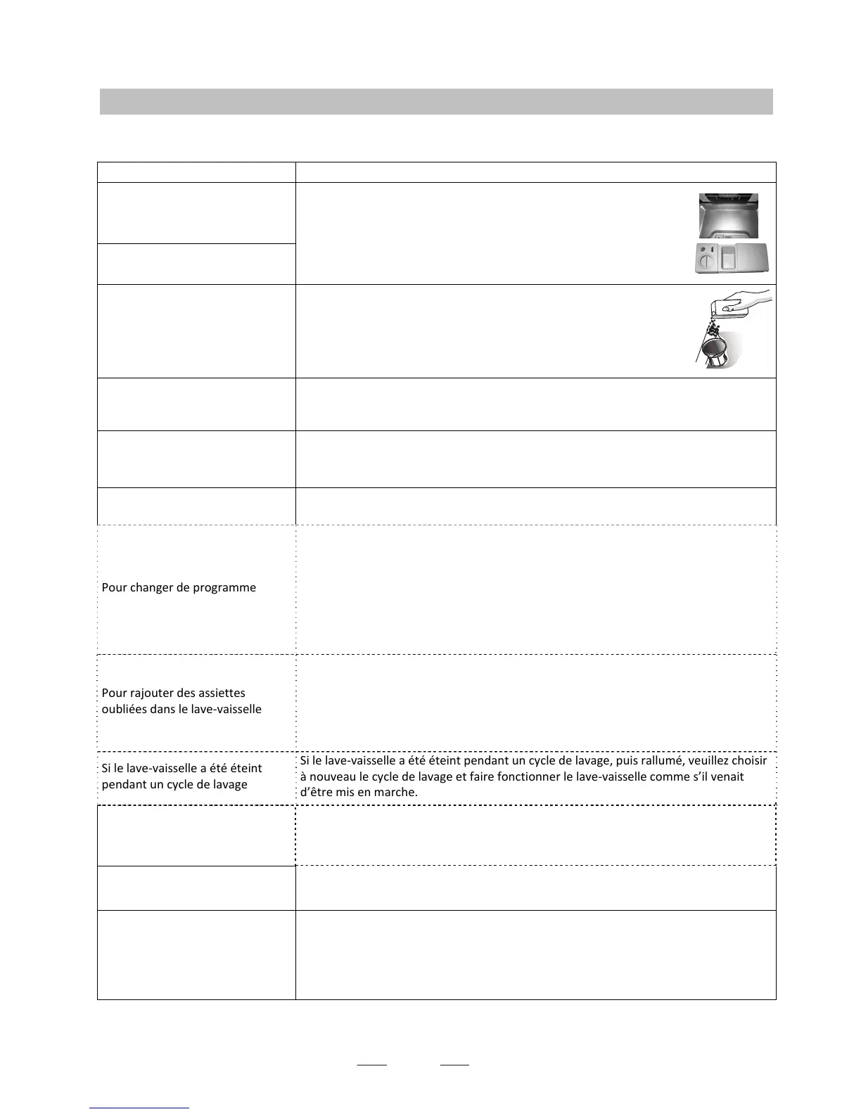 1. Entre ouvrir délicatement le lave-vaisselle afin que celui-ci s’arrête.