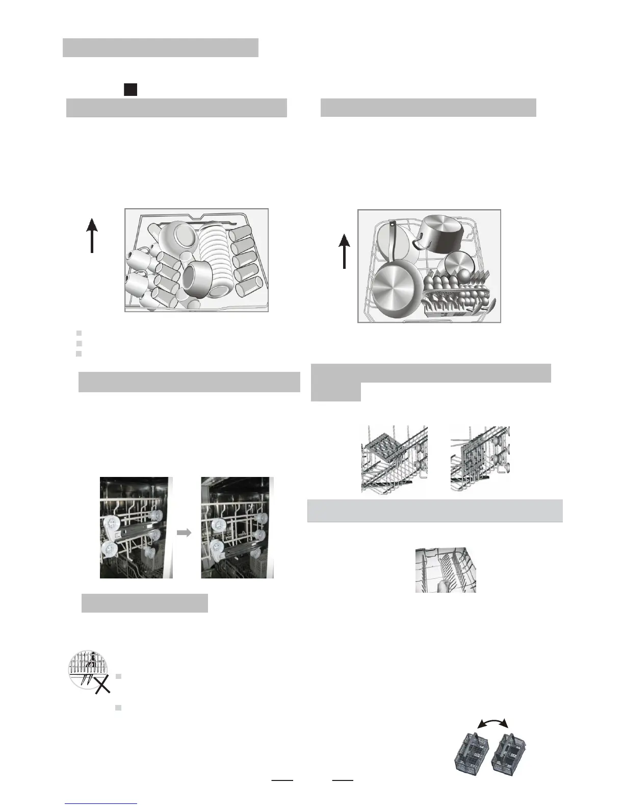ustensiles les plus longs doivent être placés à plat sur le devant du panier du haut comme indiqué sur l’image.