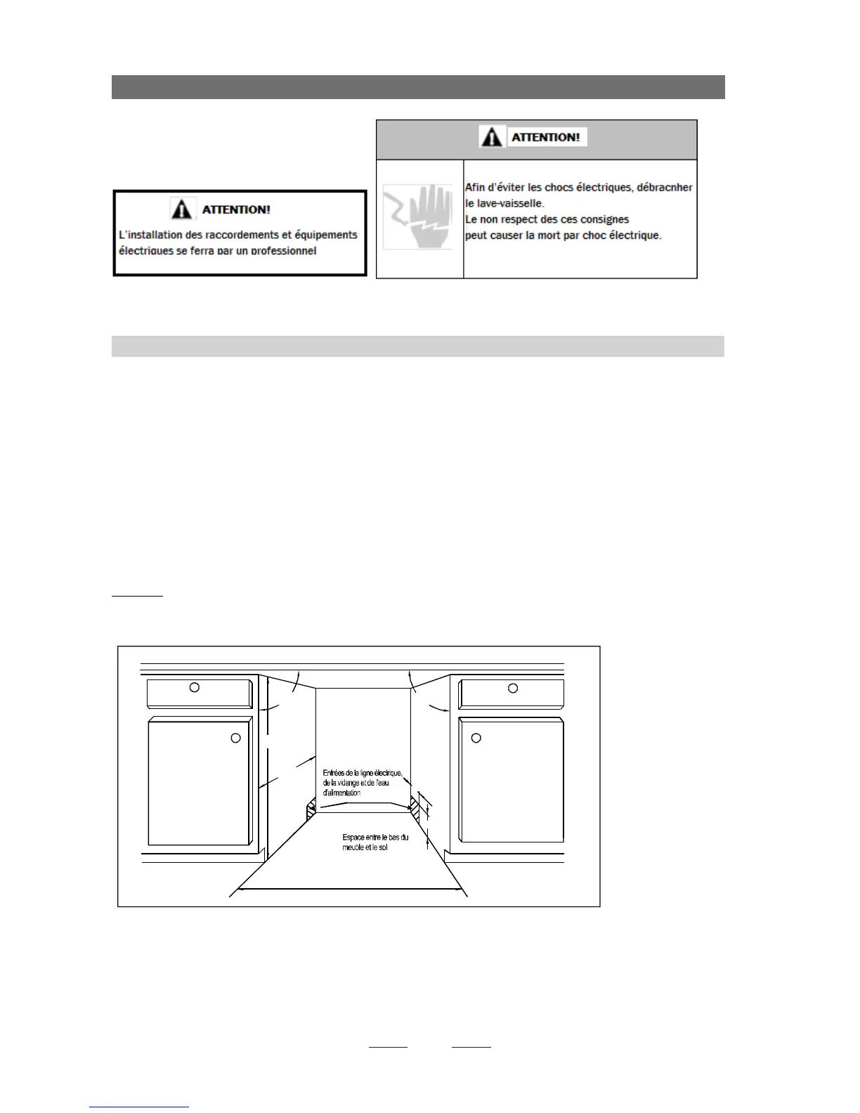 La préparation de la niche doit être faite avant le placement du lave-vaisselle à l’endroit voulu.