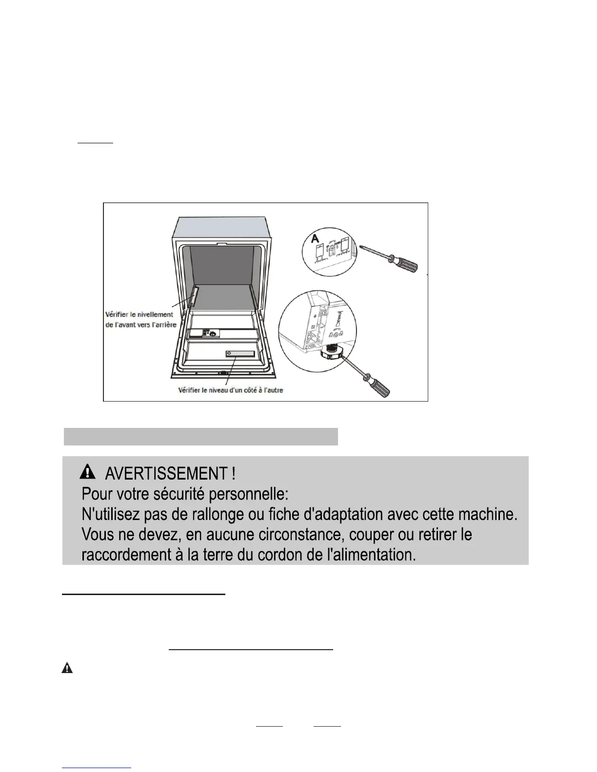 3. Lors de la mise à niveau, faire attention de ne pas faire basculer le lave-vaisselle.