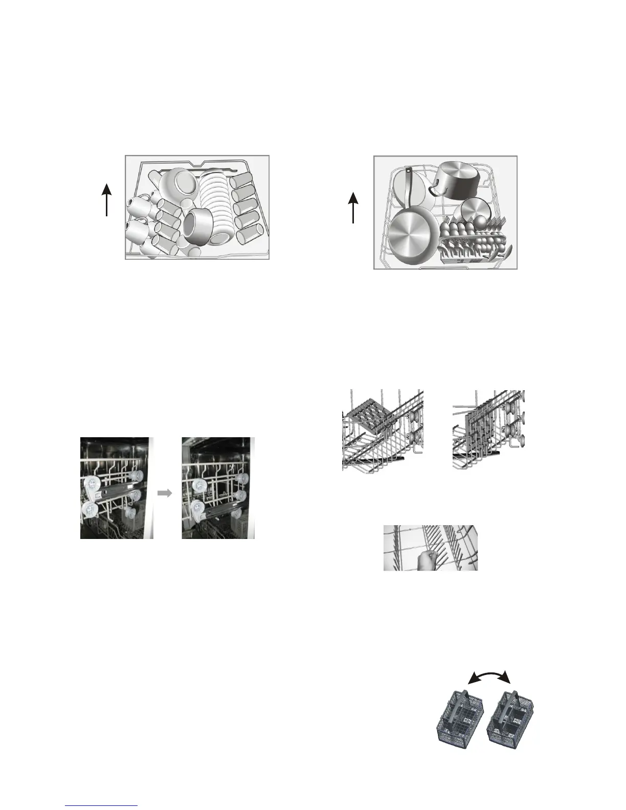 Az evőeszközöket nyelükkel felfelé kell a kosárban elhelyezni. Ha a gép oldalsó kosárral is rendelkezik, a kanalakat