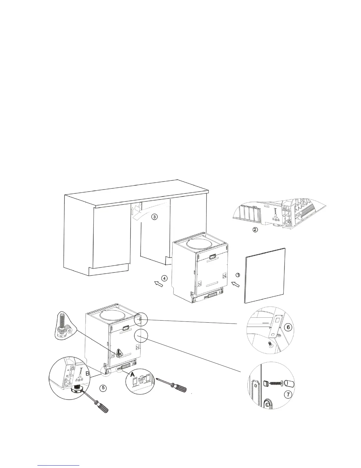 základny myčky, použijte imbusový klíč (Detail 5A). Pro seřízení přední nožky použijte šroubovák s plochým