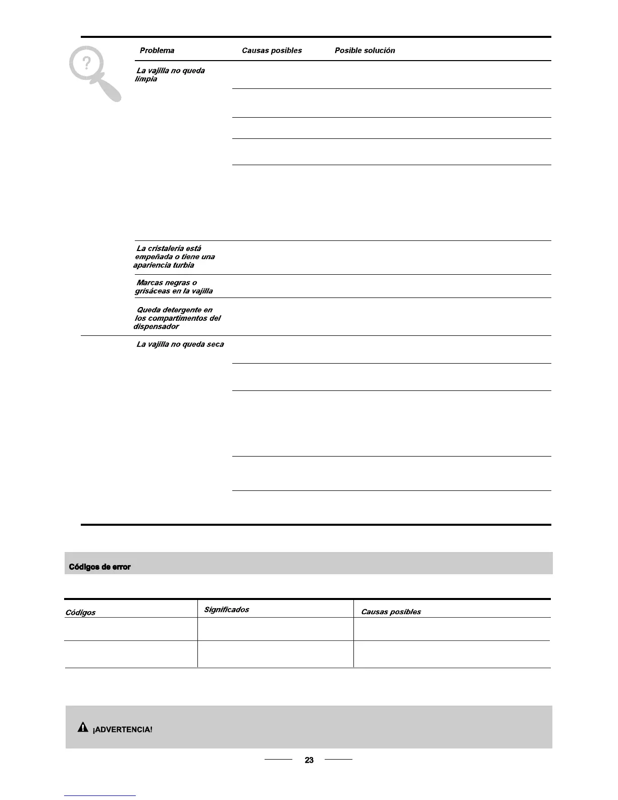 De producirse alguna anomalía durante el funcionamiento del aparato, la pantalla mostrará códigos de error para avisarle y permitirle tomar las