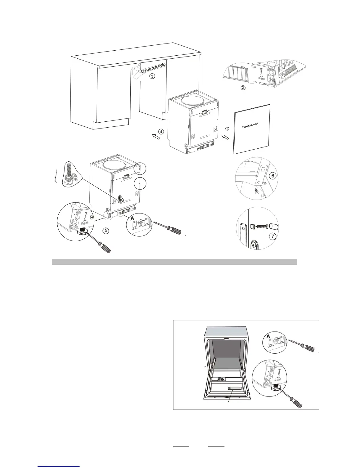 2- Regule a máquina de lavar louça ajustando individualmente os pés.