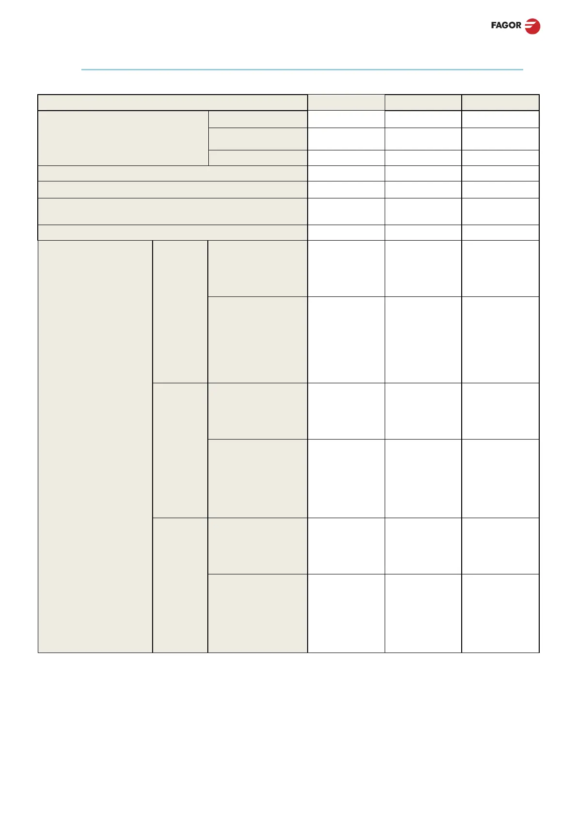 (2) Características técnicas/Technical specifications/Tabelle mit den