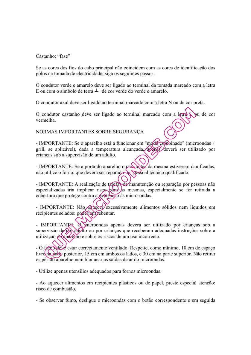 - IMPORTANTE: Não aquecer excessivamente alimentos sólidos nem líquidos em